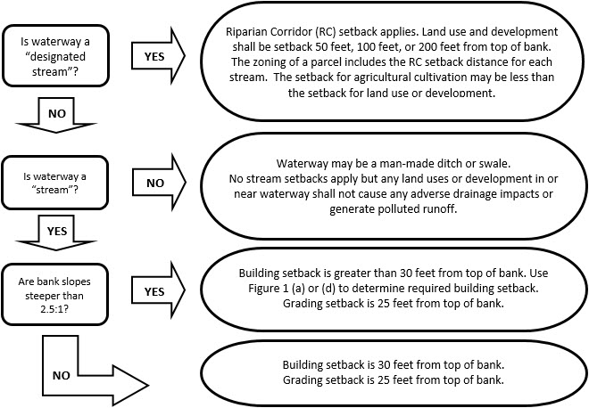 The following flow chart shall be used as a general guide to determine applicable stream setbacks.